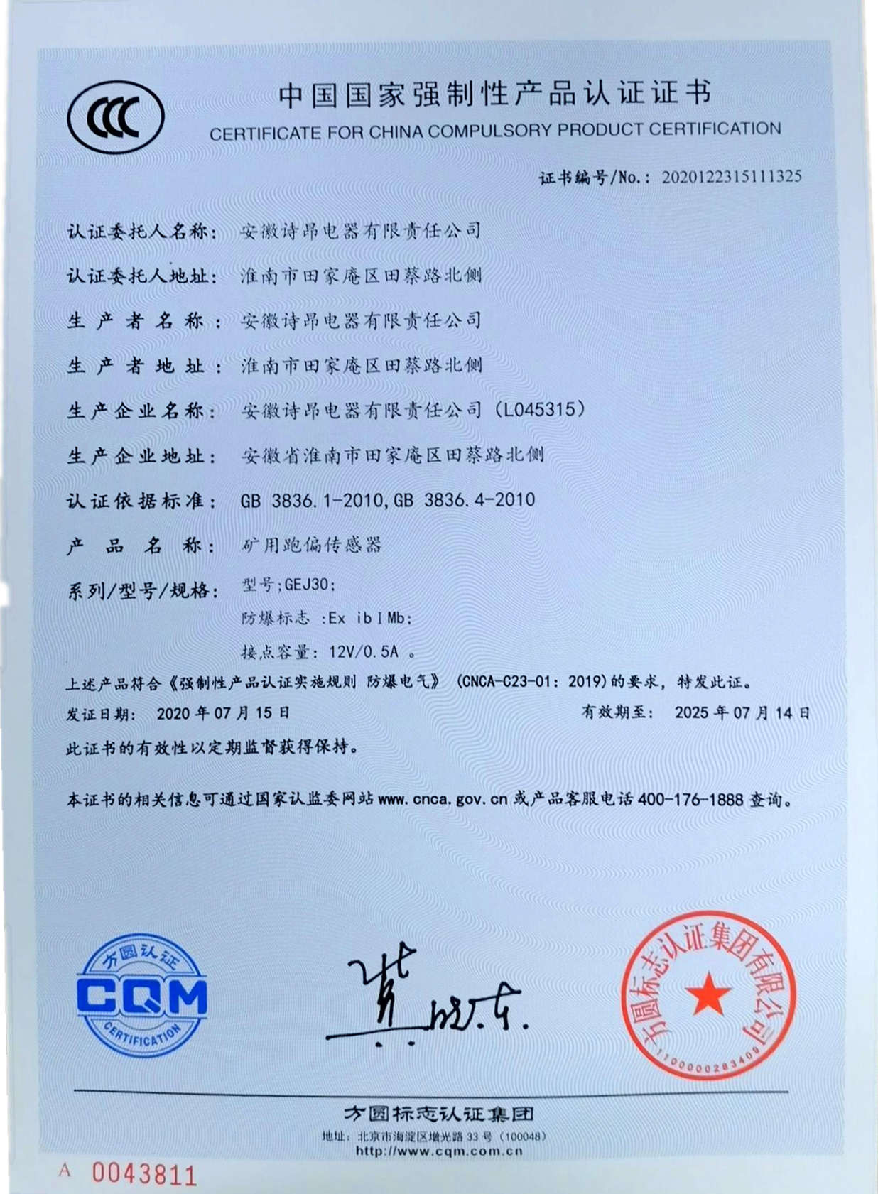 方圓安徽公司防爆電氣CCC認證工作取得成效
