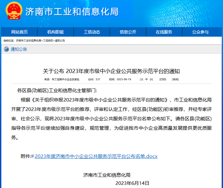 CQM方圓山東公司被認(rèn)定為2023年度濟(jì)南市中小企業(yè)公共服務(wù)示范平臺(tái)